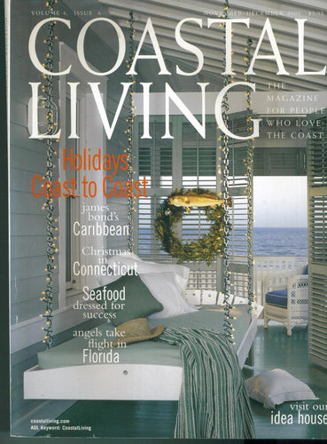 COASTAL LIVING. NOVEMBER DECEMBER 2000 VOLUME 4 ISSUE 6. SINGLE ISSUE MAGAZINE. (HOLIDAYS COAST TO COAST; JAMES BOND'S CARIBBEAN; CHRISTMAS IN CONNECTICUT; SEAFOOD DRESSED FOR SUCCESS; ANGELS TAKE FLIGHT IN FLORIDA. IDEA HOUSE., 4)