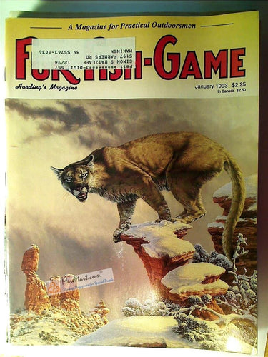Fur Fish Game Magazine, January 1993: Hound Hunting for America's Big Cats; Chuggling Trout Through the Ice; Sonora Desert Dragline; Prespawn Panfish, etc.